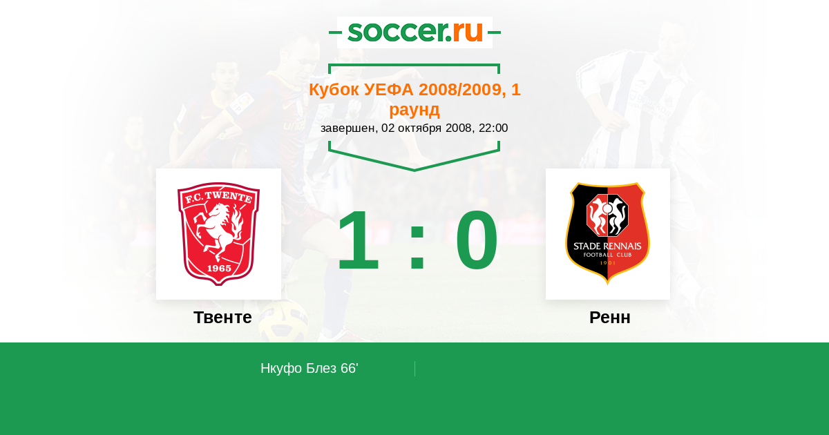 | Твенте | 1:2 | 0:0 | 1:2 |