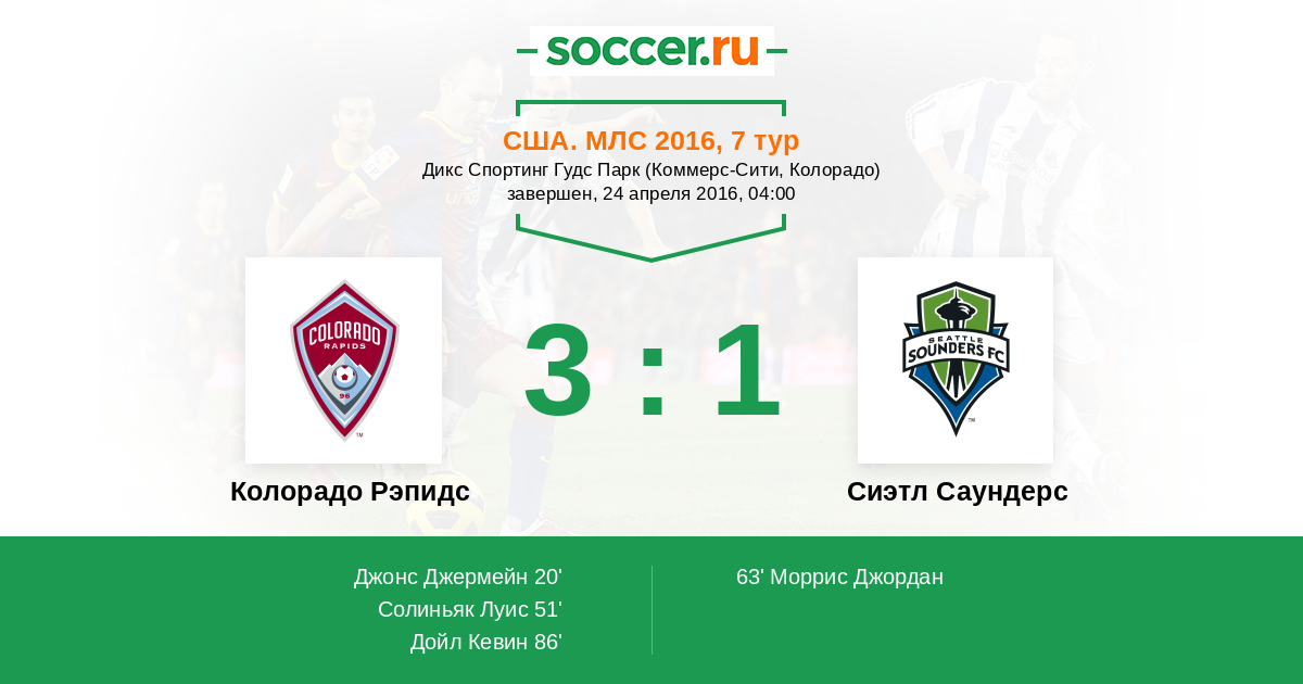 | Колорадо Рэпидс | Сиэтл Саундерс | |