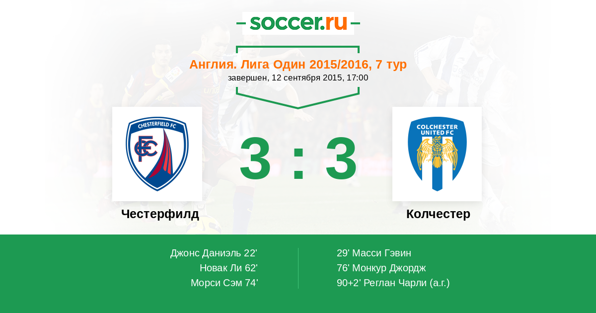 | Честерфилд | Колчестер | |