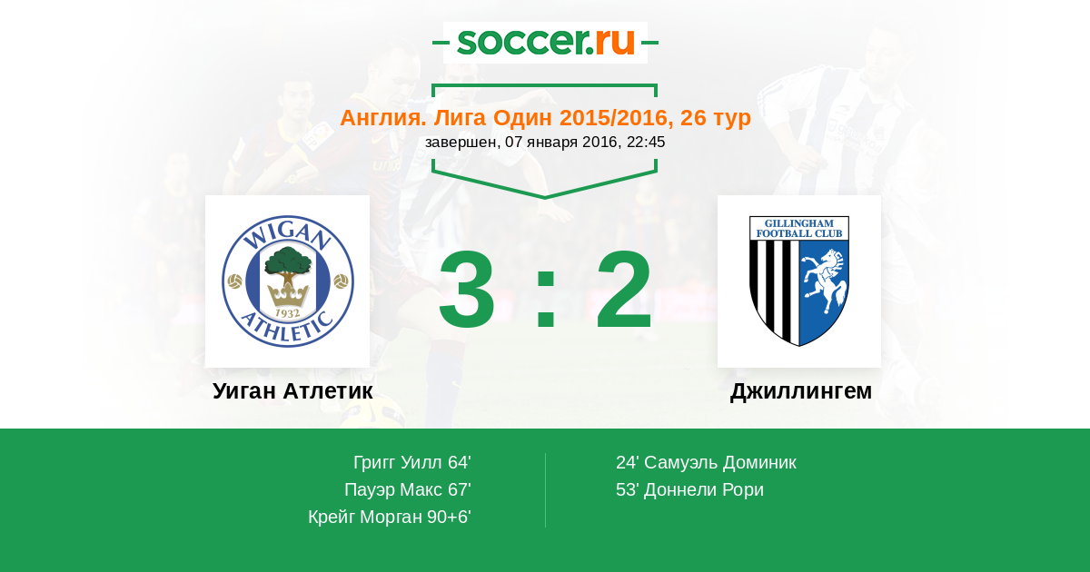 | Уиган Атлетик | Джиллингем | |