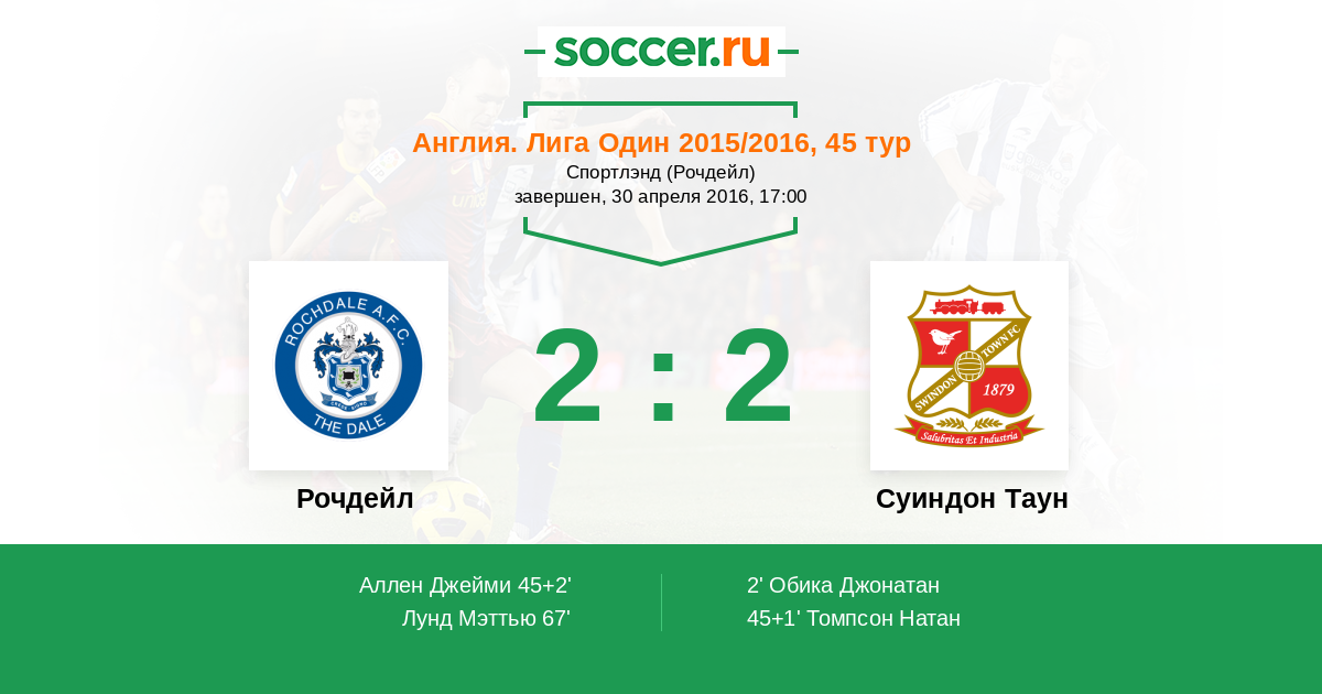 | Рочдейл | Суиндон Таун | |