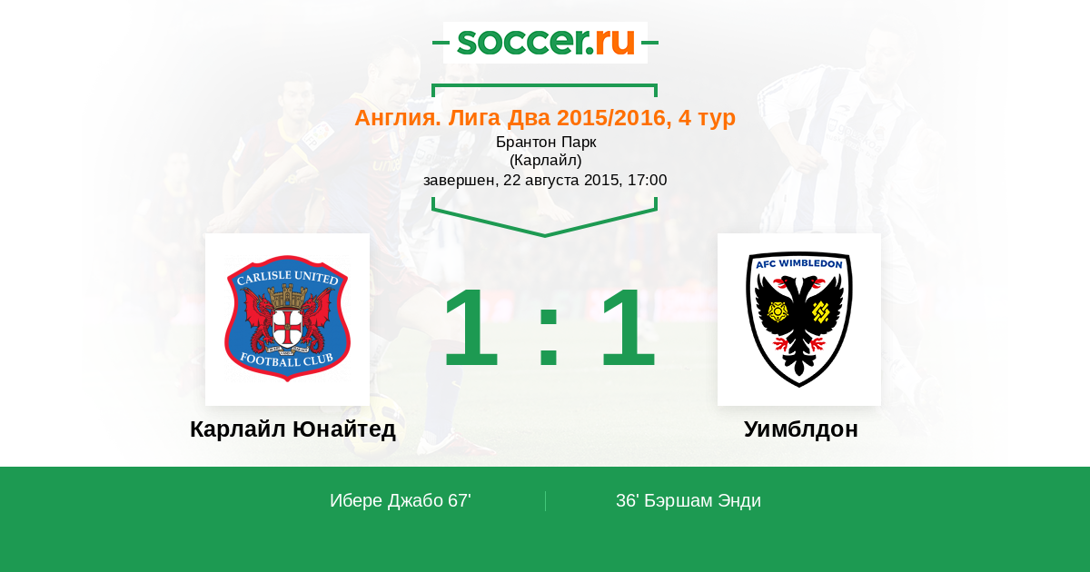 | Карлайл Юнайтед | Уимблдон | |