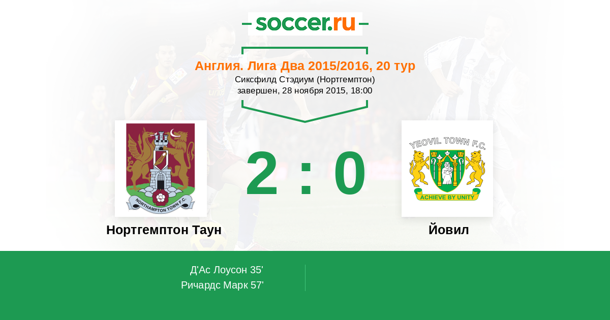 | Нортгемптон Таун | 4:4 | 2:2 | 2:2 |