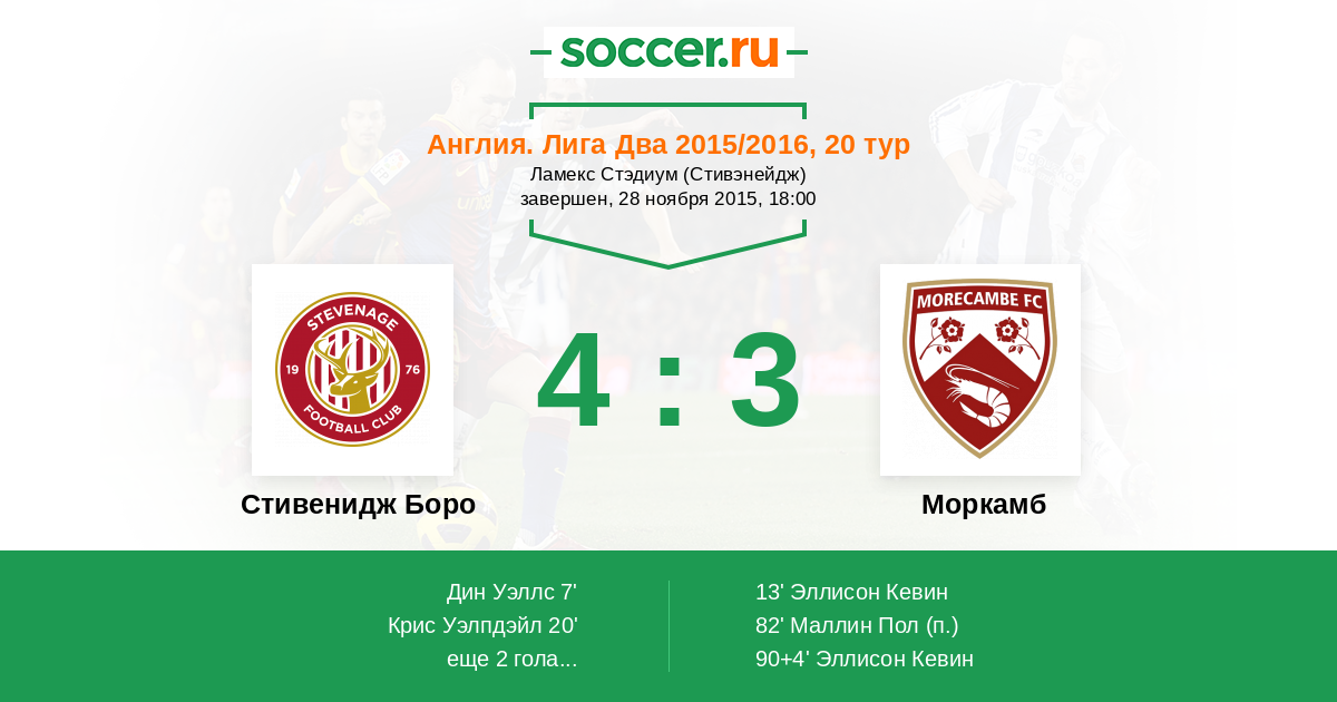 | Стивенидж Боро | Моркамб | |