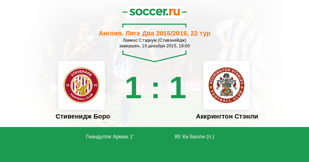 | Стивенидж Боро | Аккрингтон Стэнли | |
