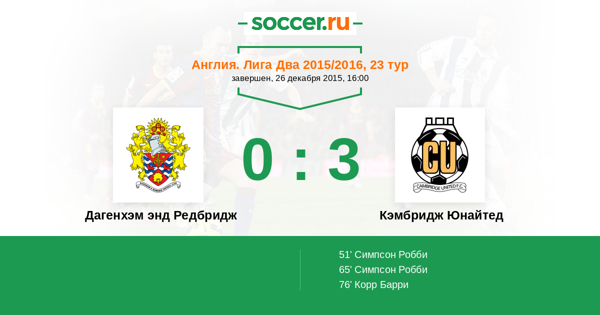 | Дагенхэм энд Редбридж | Кэмбридж Юнайтед | |