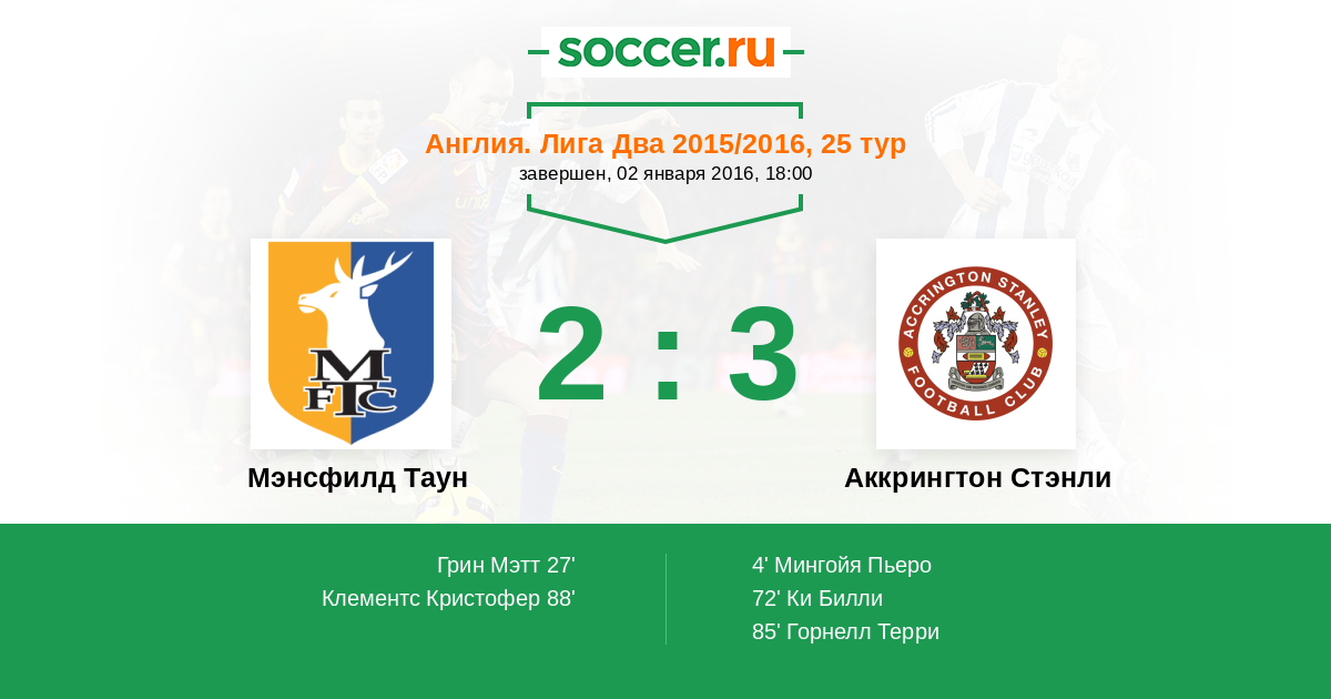 | Мэнсфилд Таун | Аккрингтон Стэнли | |