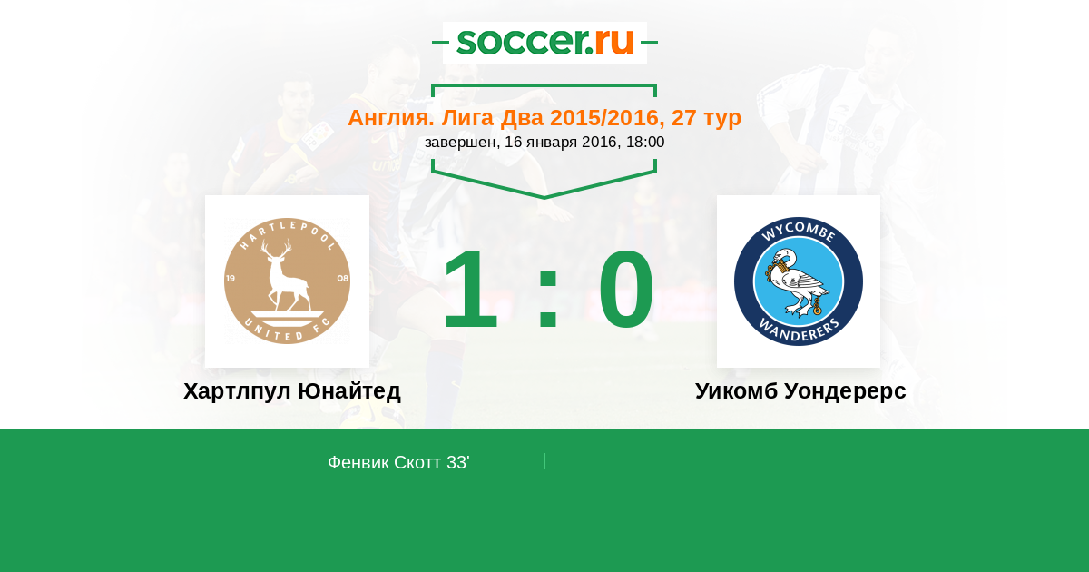 | Хартлпул Юнайтед | Уикомб Уондерерс | |