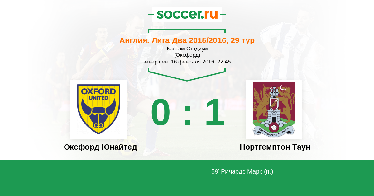 | Оксфорд Юнайтед | Нортгемптон Таун | |