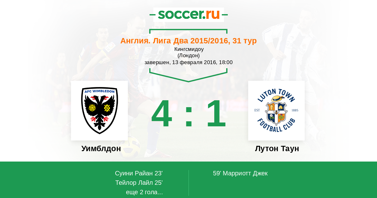 | Лутон Таун | 7:2 | 5:2 | 2:0 |