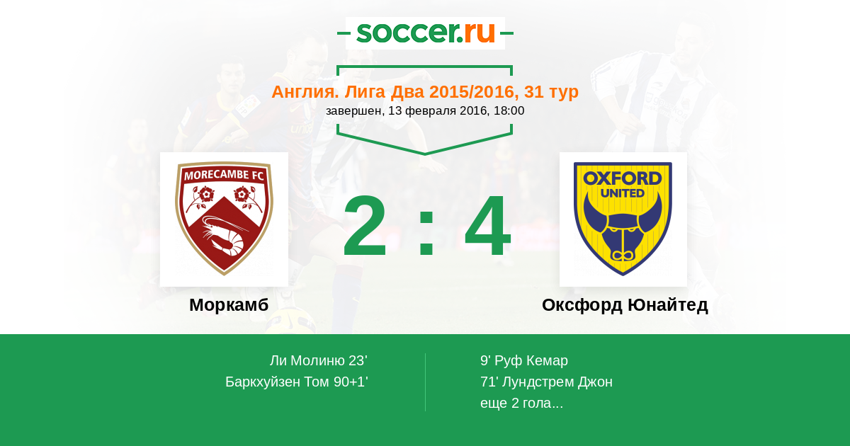 | Моркамб | Оксфорд Юнайтед | |