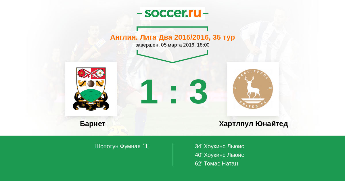 | Барнет | Хартлпул Юнайтед | |