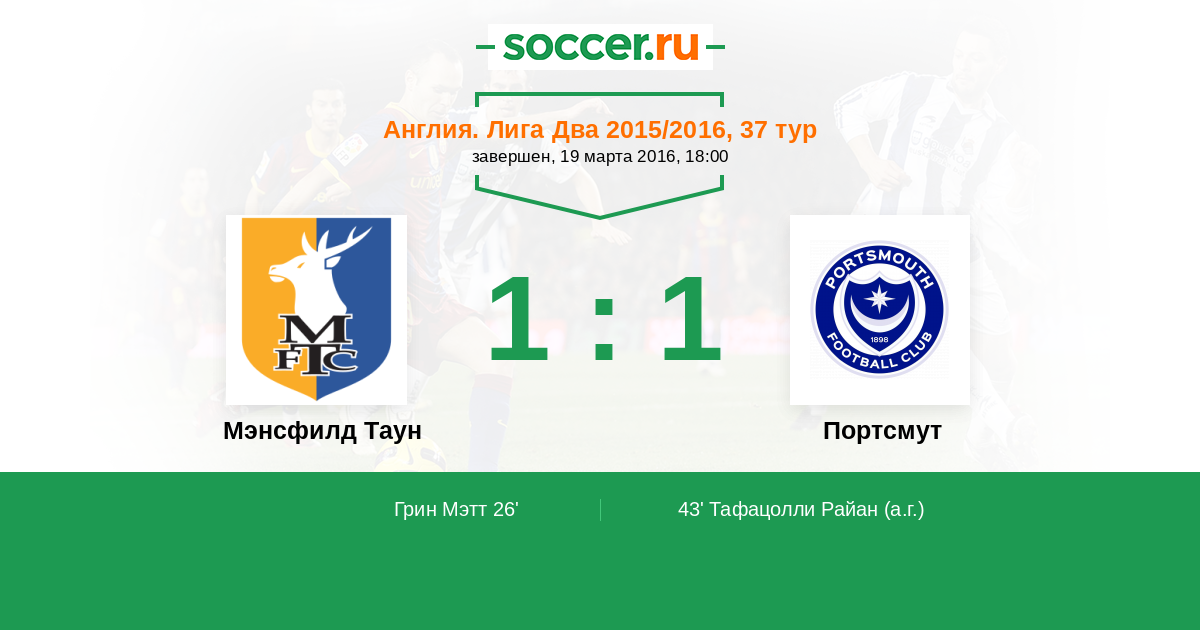 | Мэнсфилд Таун | Портсмут | |