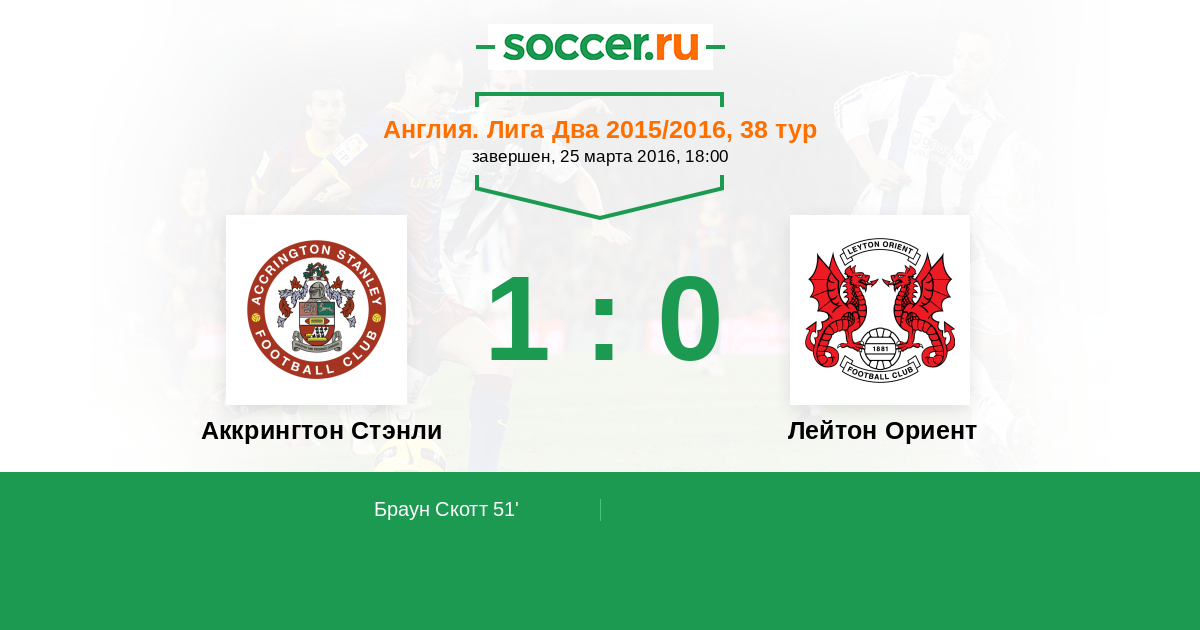 | Аккрингтон Стэнли | Лейтон Ориент | |