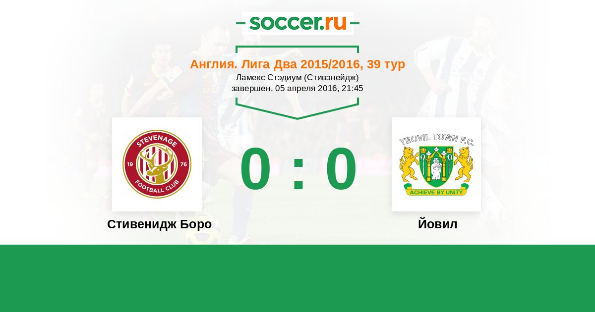 | Стивенидж Боро | 22:20 | 9:7 | 13:13 |