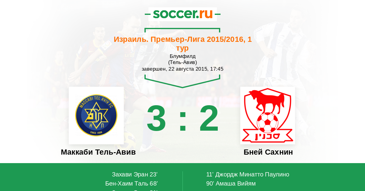 | Маккаби Тель-Авив | Бней Сахнин | |