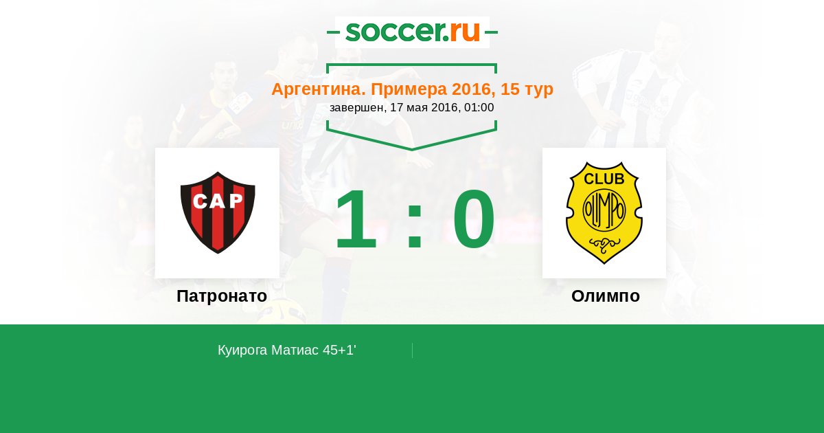 Патронато 1:0 Олимпо