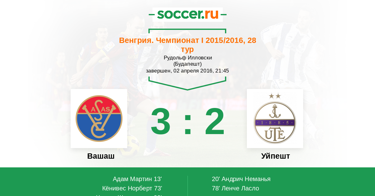 | Уйпешт | 21:9 | 12:6 | 9:3 |