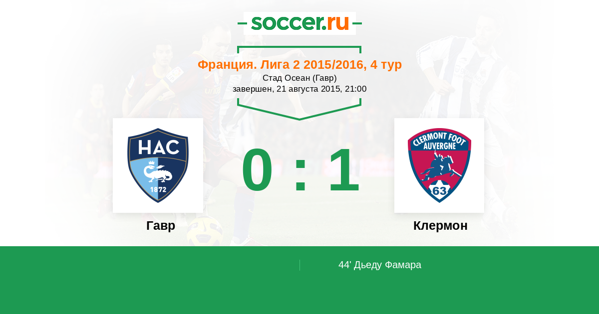 | Гавр | 32:38 | 15:13 | 17:25 |