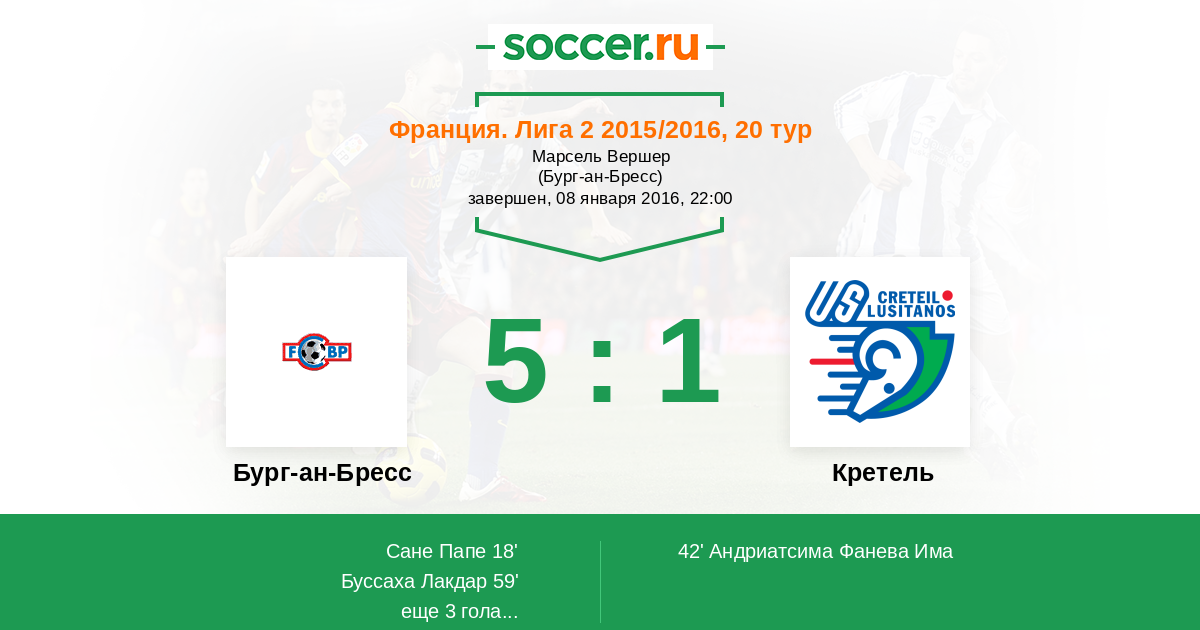 | Бург-ан-Бресс | 1:2 | 0:0 | 1:2 |
