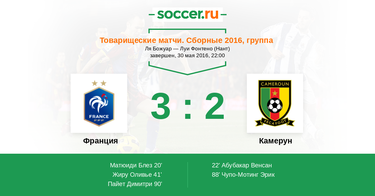 | Камерун | 1:1 | 0:0 | 1:1 |