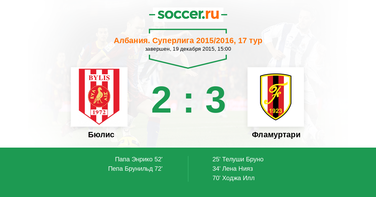 | Албания. Суперлига | 33 | 8 | 10 | 15 |