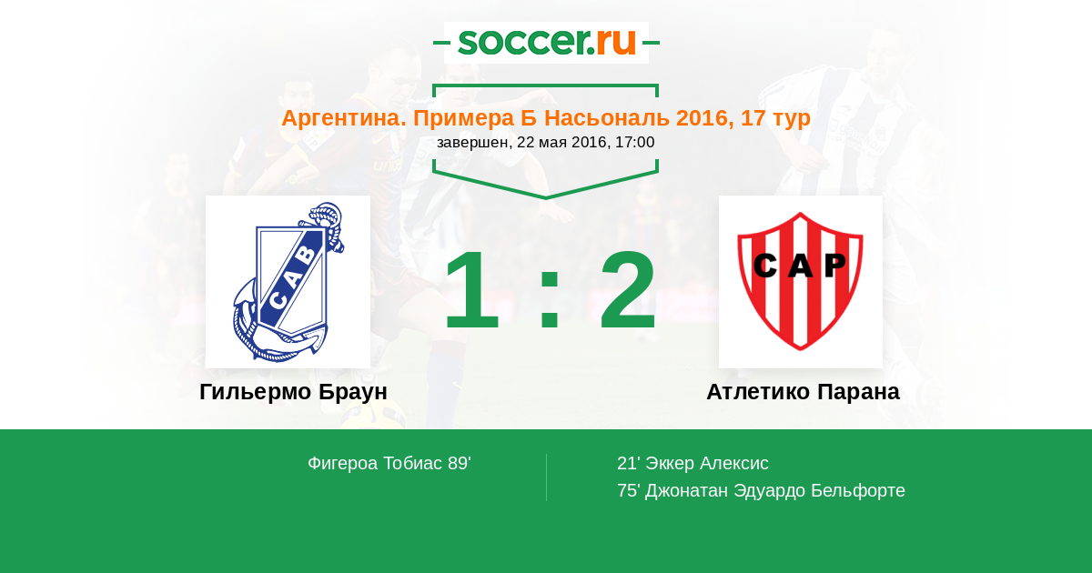 | Гильермо Браун | Атлетико Парана | |