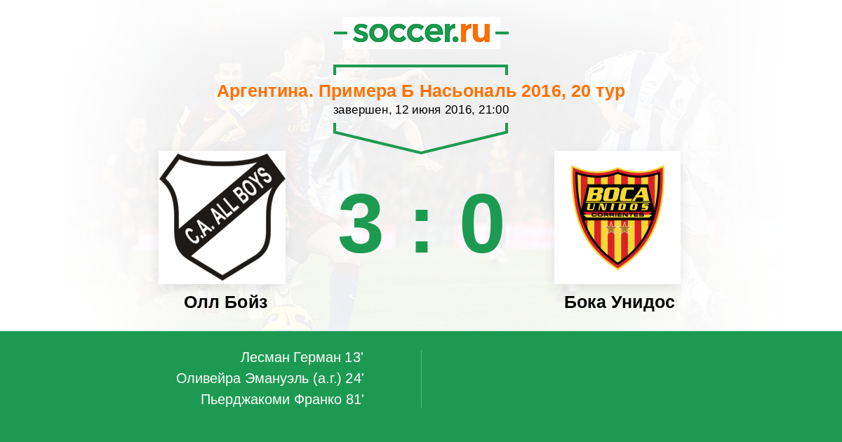 | Бока Унидос | 3:1 | 0:1 | 3:0 |