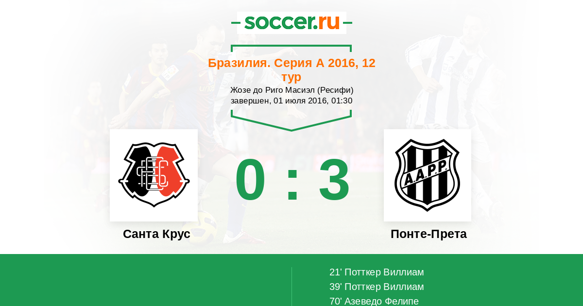 | Понте-Прета | 3:0 | 3:0 | 0:0 |