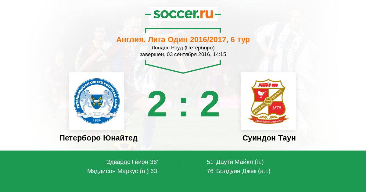 | Петерборо Юнайтед | Суиндон Таун | |