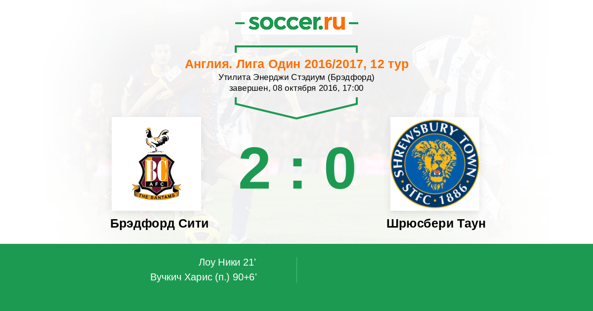 | Брэдфорд Сити | Шрюсбери Таун | |