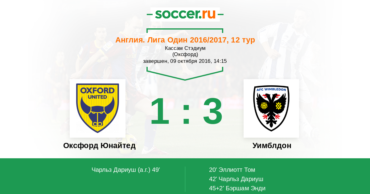 | Оксфорд Юнайтед | Уимблдон | |