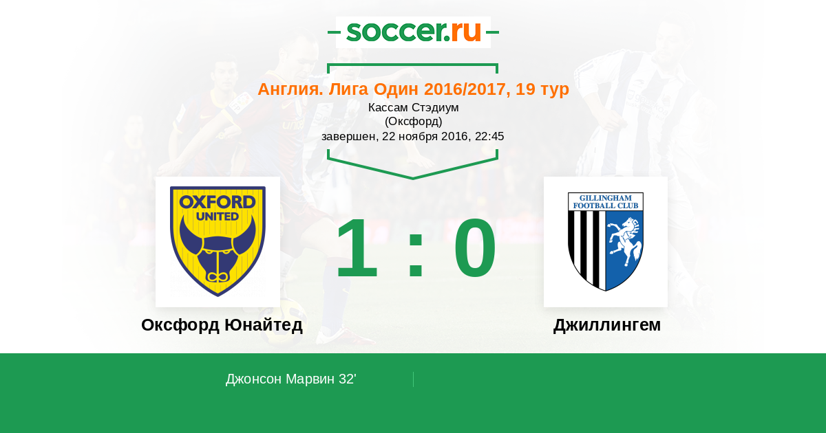 | Оксфорд Юнайтед | Джиллингем | |