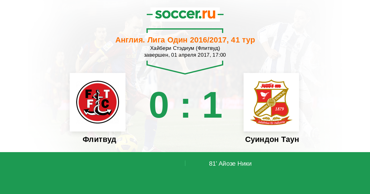 | Флитвуд | Суиндон Таун | |