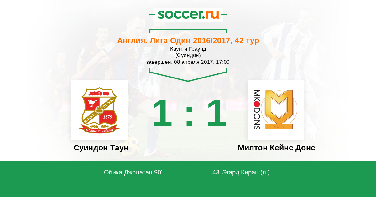 | Суиндон Таун | Милтон Кейнс Донс | |