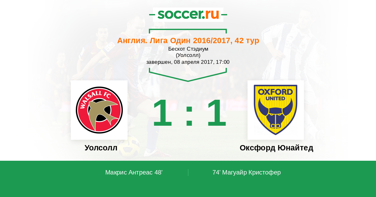 | Уолсолл | Оксфорд Юнайтед | |