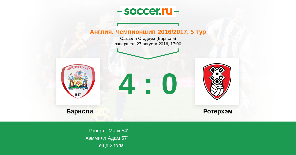 | Барнсли | 13:6 | 7:4 | 6:2 |