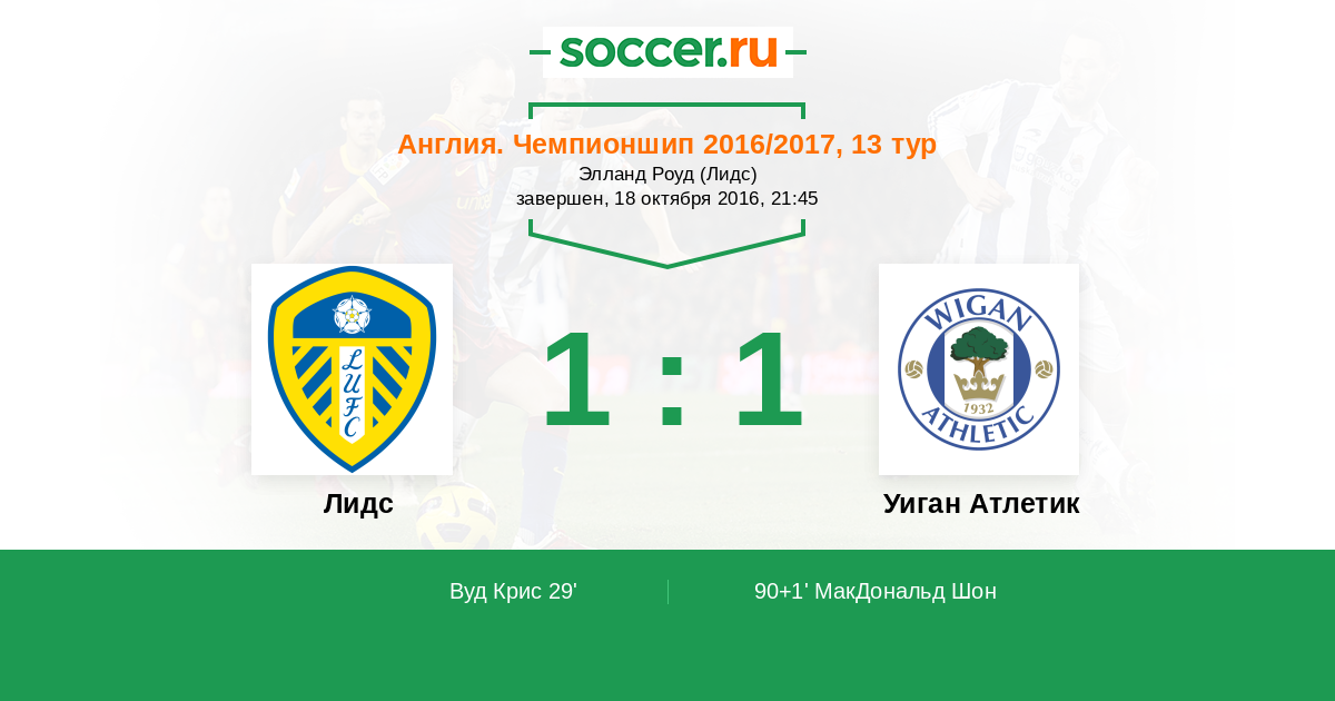 | Уиган Атлетик | 16:12 | 7:7 | 9:5 |