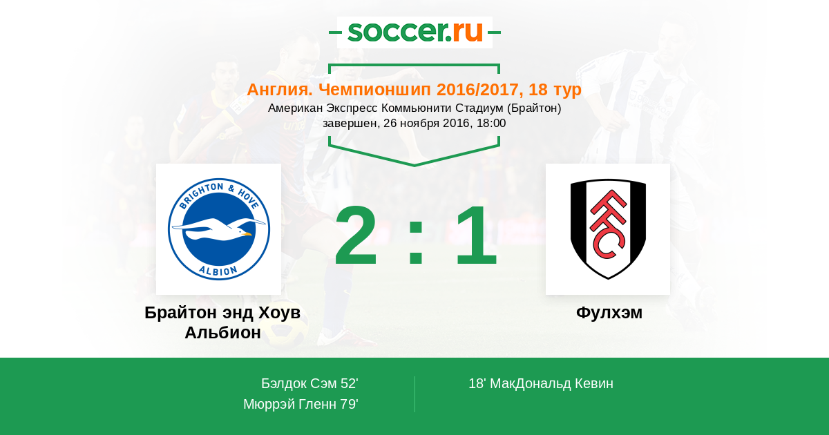 | Брайтон энд Хоув Альбион | Фулхэм | |