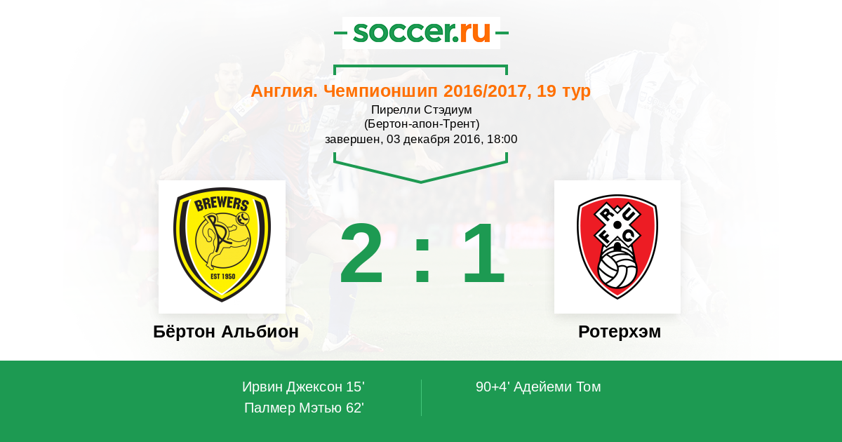 | Бёртон Альбион | 28:30 | 13:11 | 15:19 |