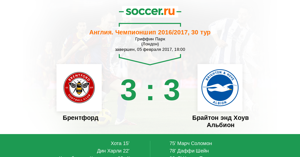 | Брентфорд | Брайтон энд Хоув Альбион | |
