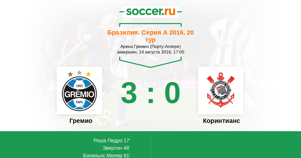 | Гремио | 52:46 | 29:17 | 23:29 |