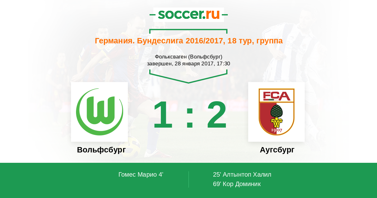| Вольфсбург | 35:36 | 19:16 | 16:20 |