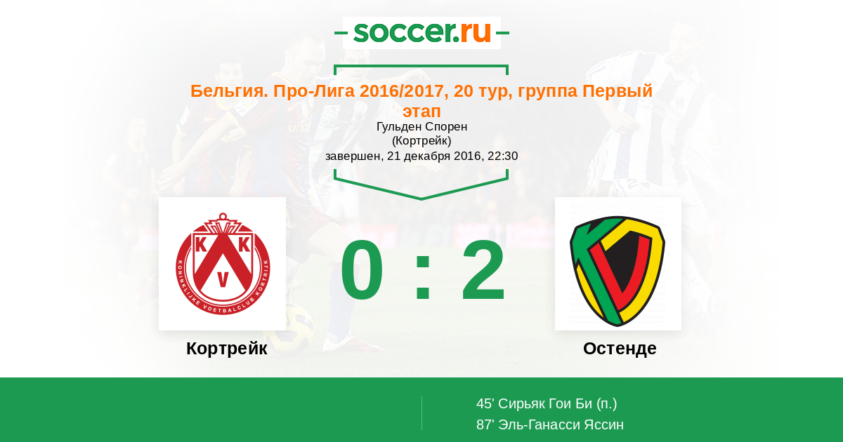 | Остенде | 43:63 | 23:31 | 20:32 |