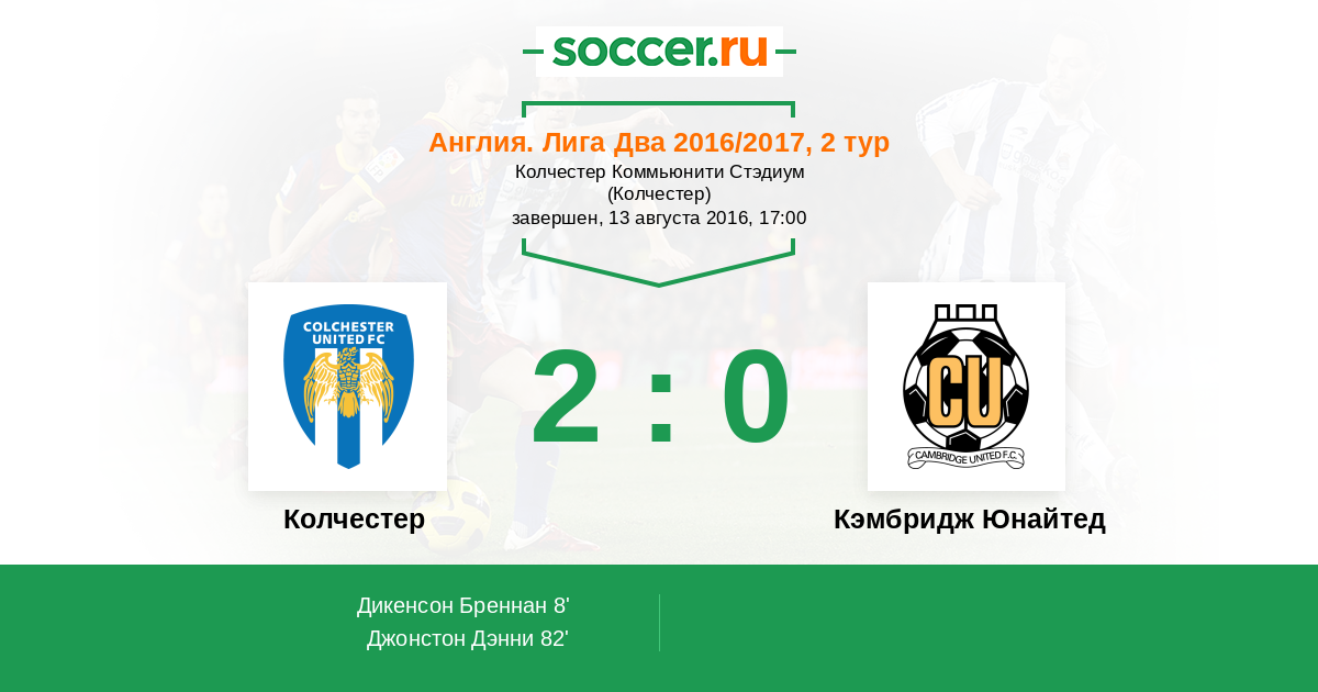 | Колчестер | Кэмбридж Юнайтед | |