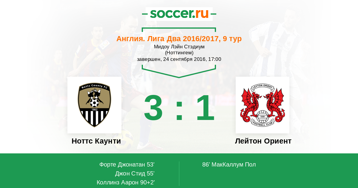 | Ноттс Каунти | Лейтон Ориент | |