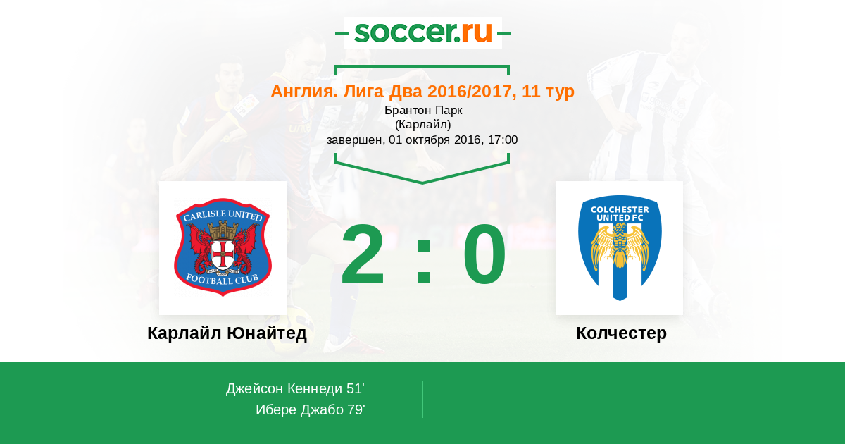 | Карлайл Юнайтед | Колчестер | |
