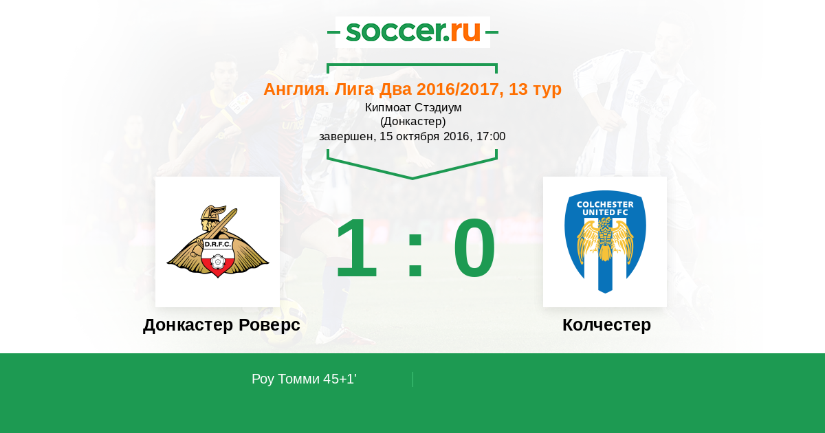 | Донкастер Роверс | Колчестер | |