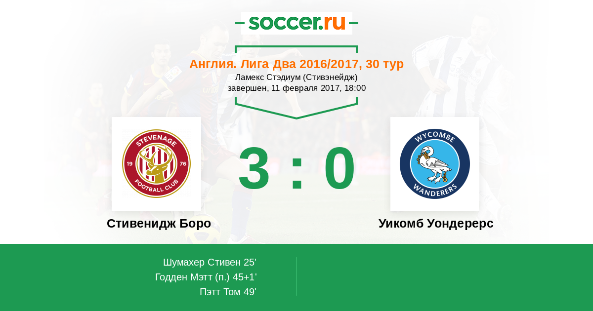 | Стивенидж Боро | Уикомб Уондерерс | |