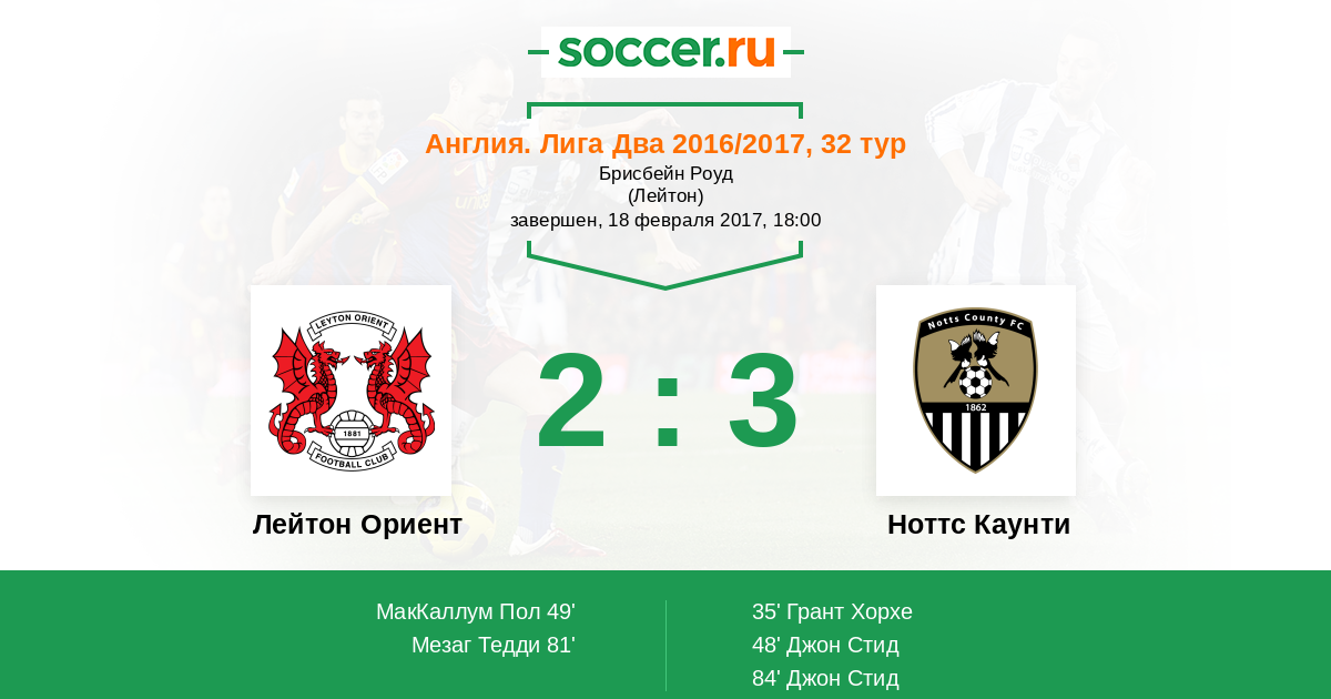 | Лейтон Ориент | Ноттс Каунти | |